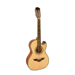 Este bajo quinto acústico de H. Jimenez ha sido elaborado con abeto de alta calidad a excepción de el fondo y laterales que han sido elaborados con caoba. El diapasón es de palisandro de 18 trastes con el tradicional logo láser de H. Jiménez y el puente especial Thunderwing. De fácil ejecución, este bajo quinto produce un sonido muy potente.