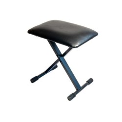 Banqueta para teclado en X con altura regulable y tapicería imitación piel color negro.