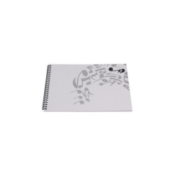 Cuaderno formato 1/4 apaisado con pentagramas para escritura musical. En total, 32 hojas impresas a ambas caras con 6 pautas por hoja.