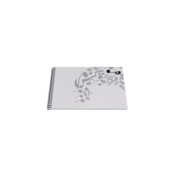 Cuaderno para los más pequeños, en formato 1/4 apaisado, con pentagramas para escritura musical. En total, 32 hojas impresas a ambas caras con 4 pautas por hoja.