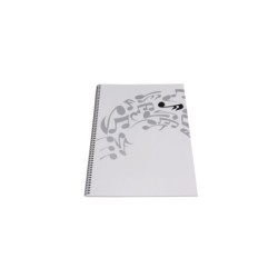 Cuaderno formato folio (A4) con pentagramas para escritura musical. En total, 32 hojas impresas a ambas caras con 12 pautas por hoja.