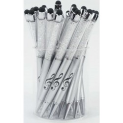 Bolígrafo Stylus g-clef con clave de sol de adorno, color plata.