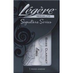 Caña sintética para Clarinete Bajo marca Légère modelo Signature con dureza de 1½. Las cañas Légère son cañas más duraderas que las tradicionales debido a que están construidas a partir de un material sintético (polímero no toxico) resistente a la humedad y a la temperatura ambiental. Además las cañas Légère se pueden desinfectar fácilmente con agua caliente y algún detergente suave.