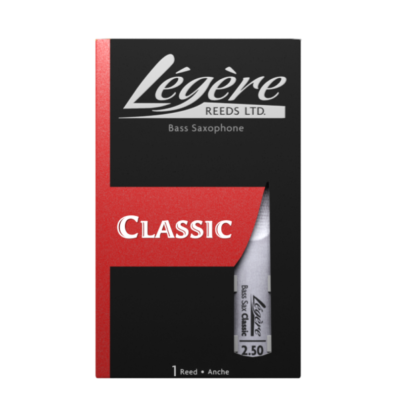 Caña sintética para Saxo Bajo marca Lègére modelo Standard con dureza 2½. Las cañas Légère son cañas más duraderas que las tradicionales debido a que están construidas a partir de un material sintético (polímero no toxico) resistente a la humedad y a la temperatura ambiental. Además las cañas Légère se pueden desinfectar fácilmente con agua caliente y algún detergente suave.