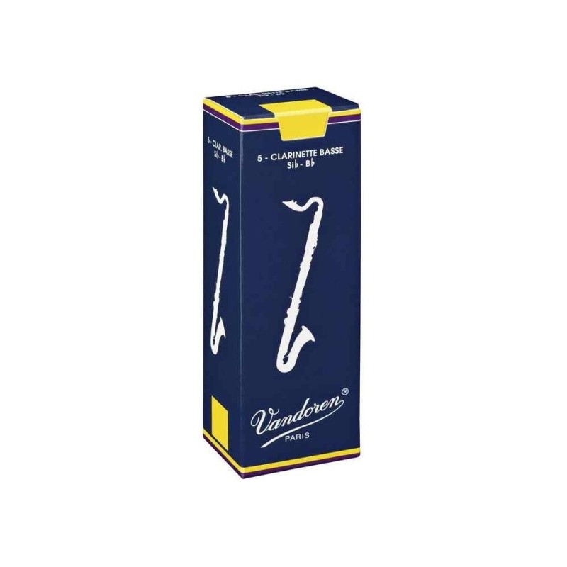 CAJA DE CAÑAS PARA CLARINETE BAJO.Serie tradicional. Caja azulNúmero 1 1/2.Caja de 5 unidades. Ref. CR1215Son las cañas más tocadas por los músicos profesionales, con una superioridad demostrada a lo largo de los años. Estas cañas convienen para todo tipo de música. Sus principales características acústicas son: una excelente respuesta en todos los registros, que incluso permite un ataque pianísimo de notas sobreagudas, la flexibilidad que permite la ejecución de grandes intervalos en legato y staccato, una riqueza de timbre que da cuerpo y brillo al sonido.