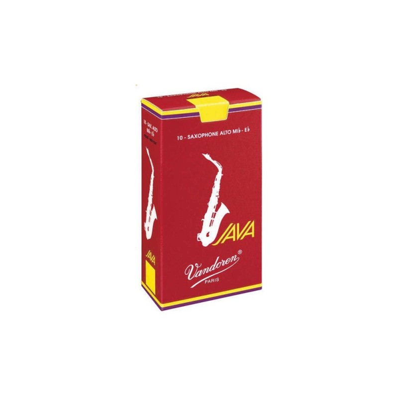 CAJA DE CAÑAS PARA SAXO ALTO.Serie Java Red. Caja RojaNúmero 3,5.Caja de 10 unidades. Ref.SR2635RProponer una mayor elección a los músicos conservando las cualidades del universo JAVA, estos fueron los objetivos que presidieron la concepción de esta nueva caña. Más floja que su primogénita, un poco más de cuerpo, la JAVA "Caja roja ofrece una sonoridad plena, densa y compacta, garantizando una excelente proyección y una gran precisión en los ataques. Nacida de la familia de las cañas JAVA, la JAVA "Caja roja se beneficia de un corte completamente nuevo. Es igualmente la primera caña Vandoren para jazz y variedades cuya corteza está raspada.