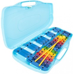 Carrillón cromático de 27 teclas de colores diferentes, con maletín en color azul celeste plástico.
