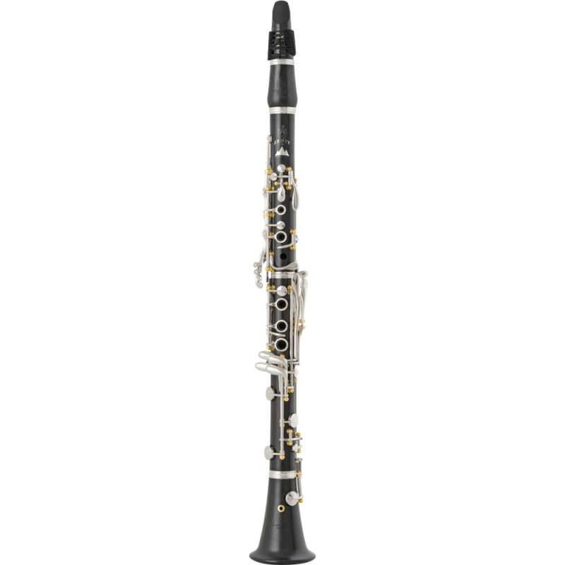 Clarinete Sib fabricado en madera de grenadilla sin tratar, con taladro "Zenit" que optimiza la proyección sonora. Incorpora 20 llaves plateadas con pilares en oro, diseñadas para una digitación fluida y ergonómica.