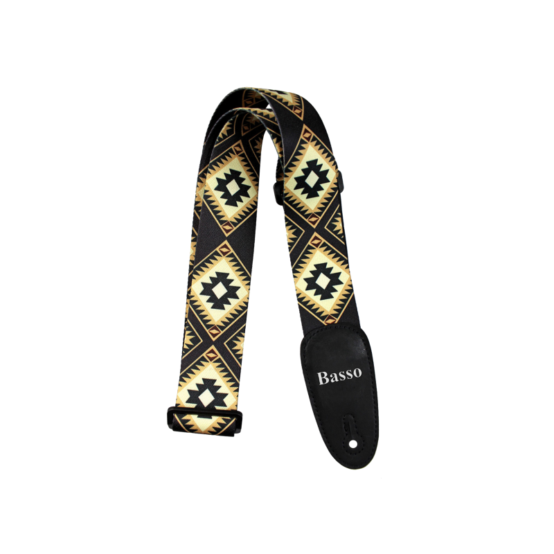 EX19 Correa para guitarra y bajo. Fabricado en poliester. Acabado sintético (Vinyl tech) en los extremos con ajuste de triple deslizamiento. 5 cm. de ancho. Ajustable de 100 cm. a 160 cm. Poti.