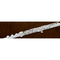 La flauta Pearl 505-RE tiene el cuerpo y la cabeza plateada. Además tiene el mecanismo de Mi y los platos abiertos y desalineados.