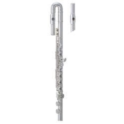 La flauta Pearl F505-R tiene el cuerpo y la cabeza Forza plateada, los platos abiertos y desalineados. Tiene mecanismo de Mi. Incluye la cabeza recta y la curvada.