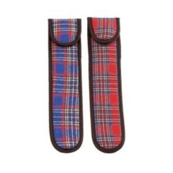 Funda de loneta escocesa, en tonos azules, con acolchado de 4mm y forro de texpun blanco para flauta dulce.