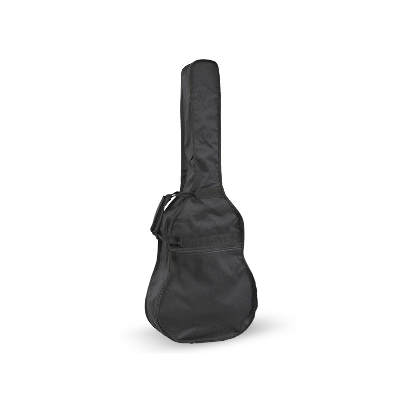 Fundas para guitarra infantil 1/4 compuesta principalmente de poliéster plastificado resistente de varios colores, posee una cremallera lateral que abre la funda completamente para un cómodo guardado del instrumento, la cremallera dispone de dos tiradores con agujeros en medio de estos dos tiradores para la posible utilidad de un cierre seguro mediante candado. Dispone de un asa lateral izquierdo para el cómodo transporte de la misma, justo detrás de la funda dispone de dos bandoleras regulables para el uso de la funda como si de una mochila se tratase, también dispone de un bolsillo delantero con cierre de cremallera perfecto para guardar accesorios de nuestro instrumento o partituras tamaño cuartilla.
