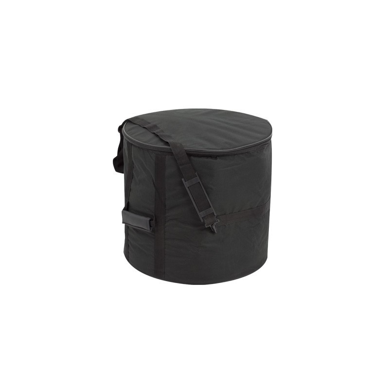 Funda timbal 43x43 Polyester. Fundas poliéster plastificado, acolchada 10mm, forro de poliéster negro, un asa y cremallera de poliéster abierta por la parte superior de la tapa. Sirve para bajon valenciano de 38x34cm.
