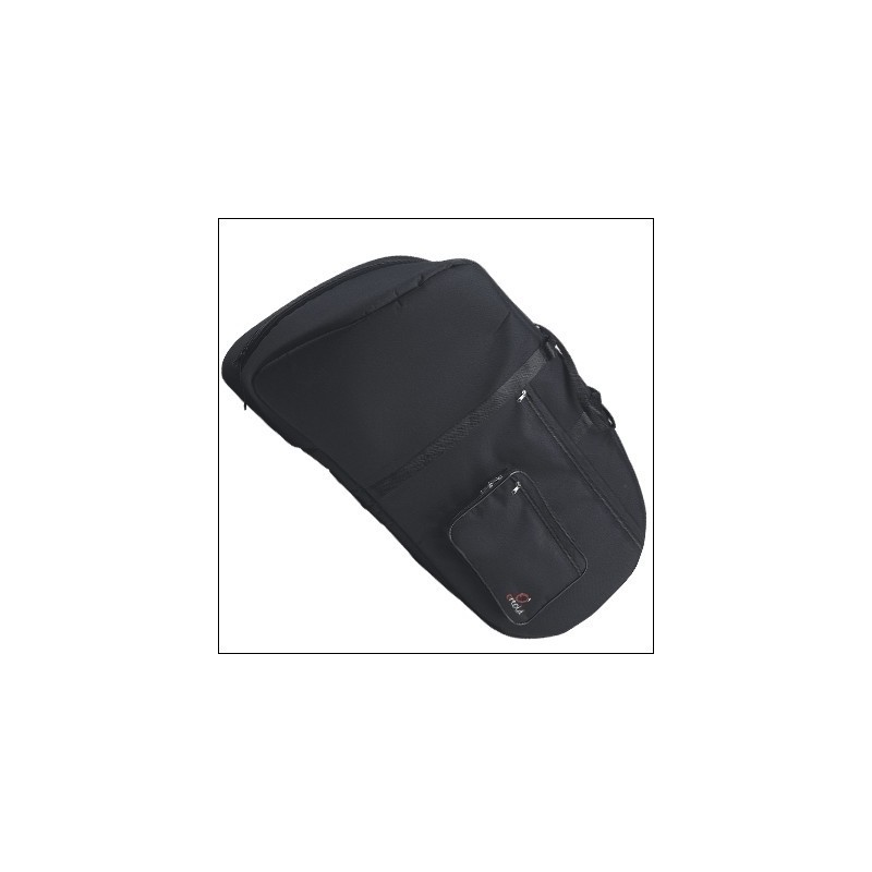Fundas de poliéster plastificado,acolchada 25mm, forro de velour negro, mochila, bolsillos y dos asas. Medidas: largo 90cm x alto 10cm x campana 35cm.