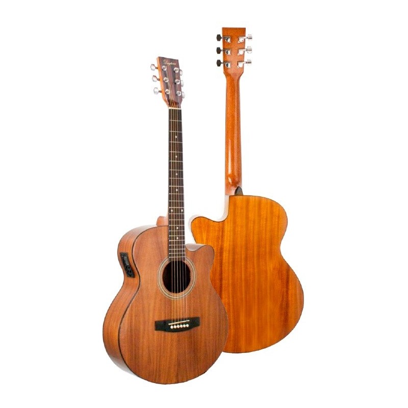 A401CEKOA Daytona A-401KOA Mini-Jumbo. Tapa: Koa. Aros y fondo: Koa. Diapasón: Álamo. Puente: Nogal. Electrificada con Cutaway. EQ: TP-30 con afinador. Acabado: Brillo.