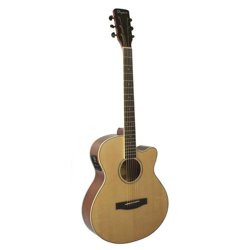 GADSTN Daytona GADST Mini Jumbo TAPA MACIZA Tapa: Abeto Macizo. Aros y fondo: Caoba. Ribetes: En tapa y fondo. Electrificada con Cutaway. EQ: H3T. Acabado alto brillo.