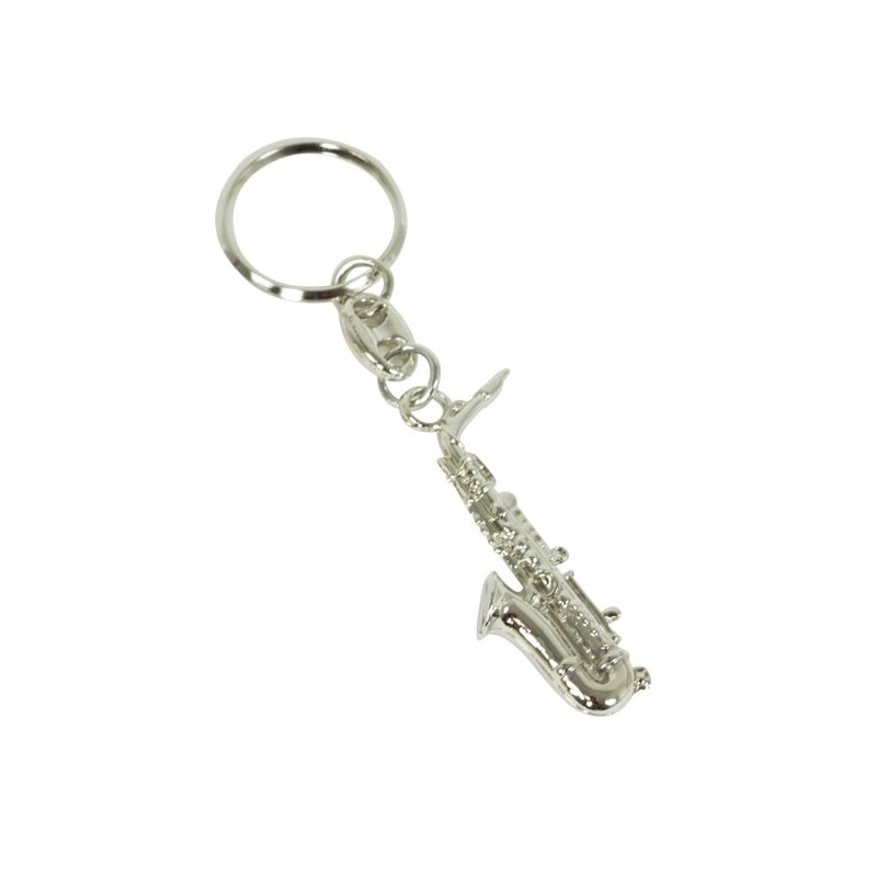 Llaveros en forma de saxo. Disponibles en acabado dorado y plateado. Medida: 5cm.