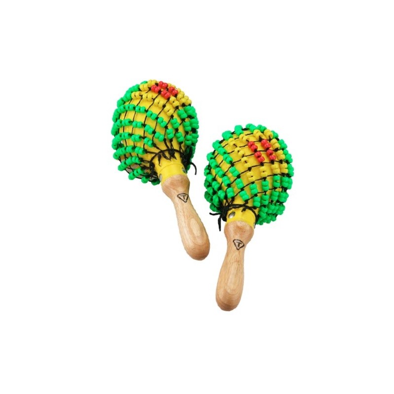 MARACA TYCOON PLASTICO AMARILLO CON SHEKERE TMPB-Y Hechas de cárcasas de plastico Ensartadas a mano con cuentas de nylon adjustable, permite que puedan ser tocadas fuerte, con un sonido vibrante y lleno, o un sonido más suaves para mayor control Mangos hechos de madera ecológica de Roble Siam También se pueden usar como efectos de shekere Se venden en pares