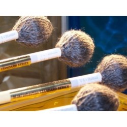 Modelo con cabeza de goma de termoplástico duro, sonidos más brillantes, con ataque claro y preciso por la tensión de la lana. Tienen un excepcional sonido en toda la tesitura del vibráfono y son baquetas que funcionan perfectamente en marimba, también en todo el rango del instrumento. Modelo general un poquito más duro, muy vendido también, como la referencia V3.