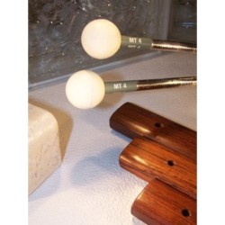 Modelo con cabeza hecha en termoplástico de dureza media - dura, sonido muy correcto para instrumentos de todo tipo, láminas (xilo, vibráfono, marimba en la parte media y aguda), parches, madera (temple blocks, woodblocks), instrumentos de metal, etc... Enorme versatilidad con una prestación inigualable.