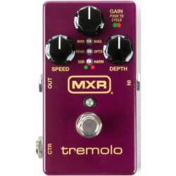 Las seis formas de onda de trémolo del MXR representan fuentes clásicas e icónicas del efecto, así como nuevos sonidos inventados por el equipo de diseño del MXR. En primer lugar, el estilo MXR recrea el sonido orgánico y el pulso del MXR M159 Stereo Tremolo. El estilo Bias se inspira en la exuberante y poderosa compresión de los efectos de trémolo que venían equipados en los amplificadores de tubo de principios de los 60. El estilo Revo, una innovación original, hace retroceder la forma de onda del trémolo óptico para obtener picos y valles más exagerados. El estilo Opto emula el suave trémolo pulsante generado por las células fotoeléctricas en muchos amplificadores populares. Inspirado por un icónico efecto exterior, el ajuste SQR produce un trémolo entrecortado y súper pronunciado. Finalmente, el estilo Harm recrea el trémolo de fase triple producido por ciertos amplificadores antiguos.