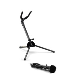 El soporte TravLite de saxo Alto se recoge de manera compacta para guardarse en la campana de su instrumento.