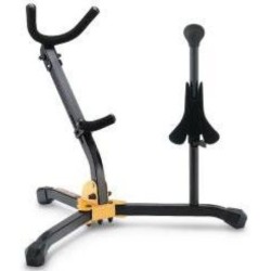 Soporte Hercules DS-533B para Saxo Alto o Tenor + Saxo Soprano. El apoyo plegable sujeta su saxofón Alto/Tenor con seguridad. Tiene un apoyo trasero ajustable para Saxofón Alto y Tenor. Cono en SFF para Saxo Soprano, desmontable para guardarlo fácilmente.