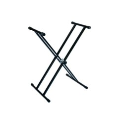 Soporte en X doble para teclado con cierre tipo engranaje para un ajuste más preciso y seguro.