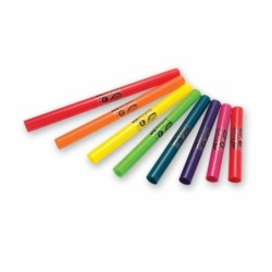 Juego de 8 tubos de percusión diatónicos de colores brillantes, marca Wak-a-Tube. Su simplicidad lo convierten en un instrumento fácil de tocar tanto para niños como adultos. Las posibilidades son infinitas: se pueden tocar golpeándolos con las manos, con palos o en el suelo, entre otras muchas formas. Los Wak-a-Tubes producen tonos afinados con precisión. Además, gracias a la coloración de los tubos individuales, los arreglos también pueden ser codificados y reproducidos sin necesidad de conocer las notas.